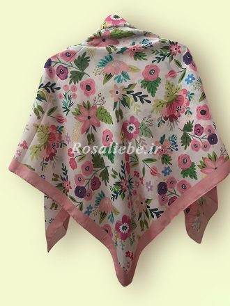 روسری نخی قواره متوسط (قواره 110) باغ بهشت صورتی