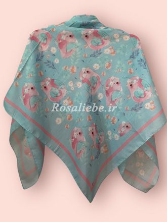 روسری نخی قواره متوسط (قواره 110) رزا سبزآبی